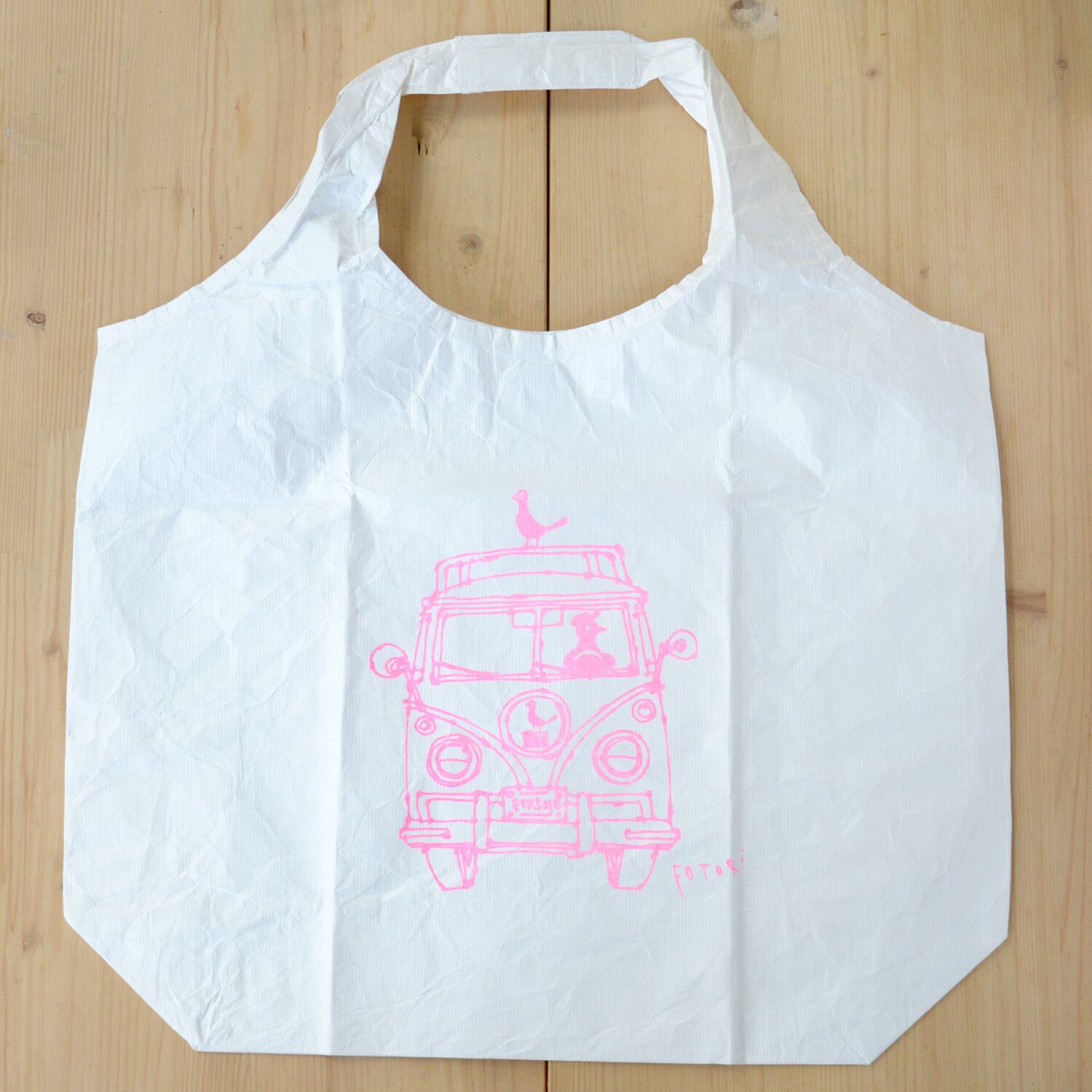 このタイベック素材で、ホトリオリジナルのマルシェバッグ(エコバッグ)を作りました。